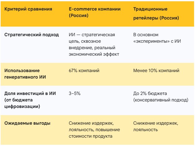 Сравнение ИИ-стратегий: российский e-commerce и традиционный ретейл
