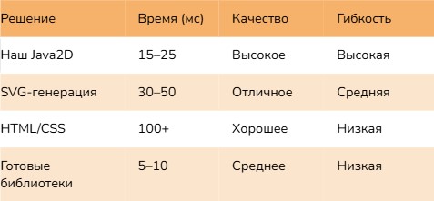 • SVG-генерация — сложнее, но масштабируется лучше.
