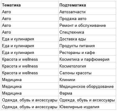 1. Составляем справочник тематик и подтематик.